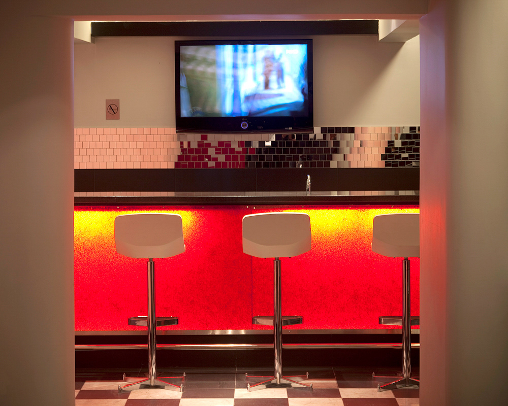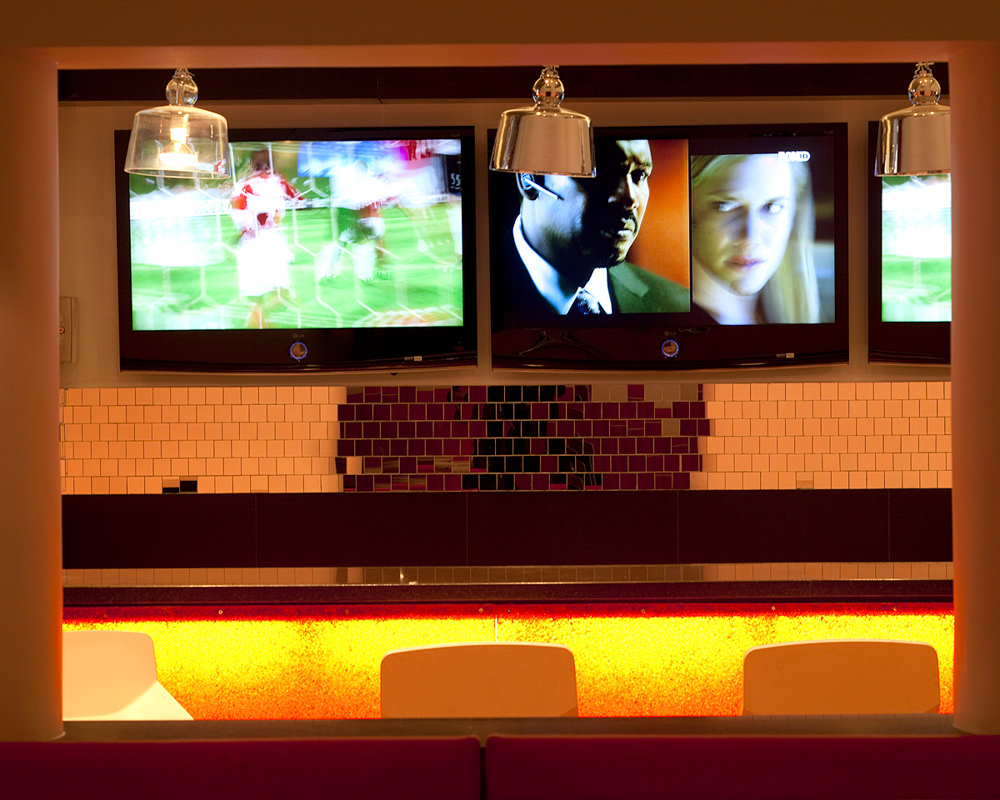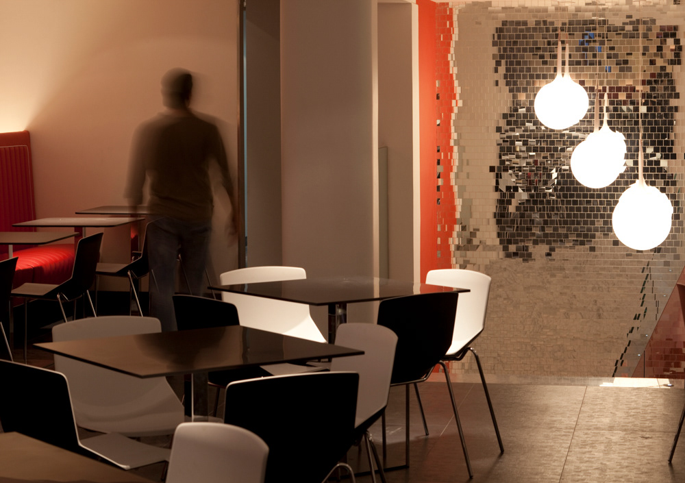 Mr. Jack Burger Bar, Santiago, Chile. El Bosque Norte Parque Arauco Nueva Costanera Arquitectos Orlando Etcheberrigaray, Klaus Matuschka Superficie 565 m2 420 m2 340 m2 Fotografías Marcelo Cáceres Año 2010