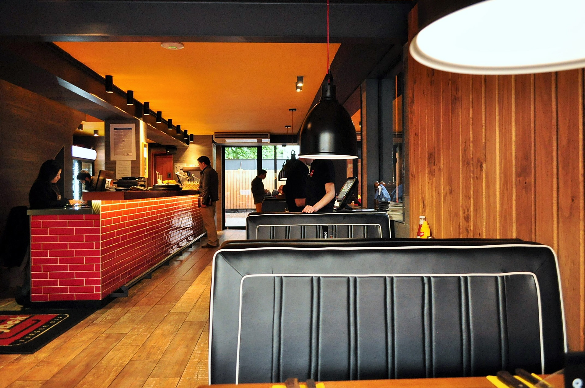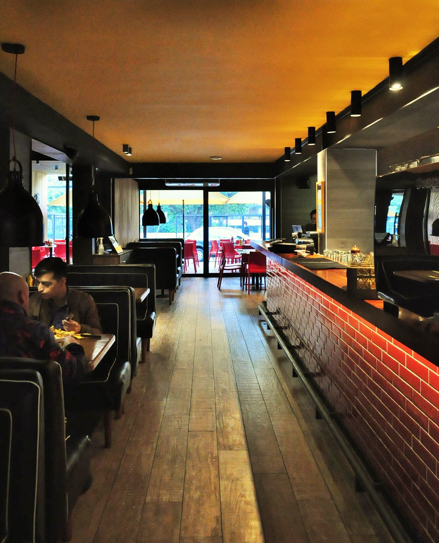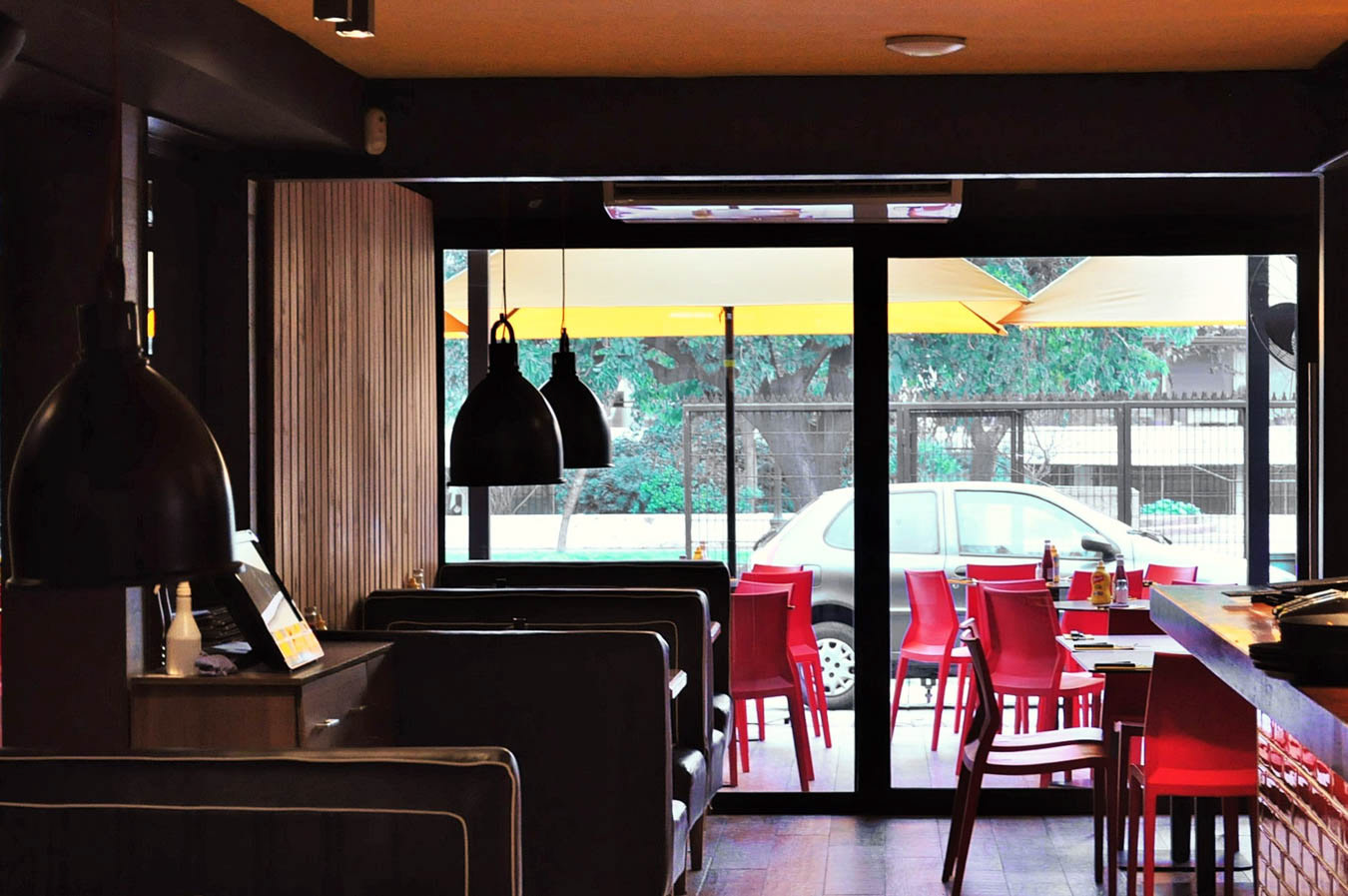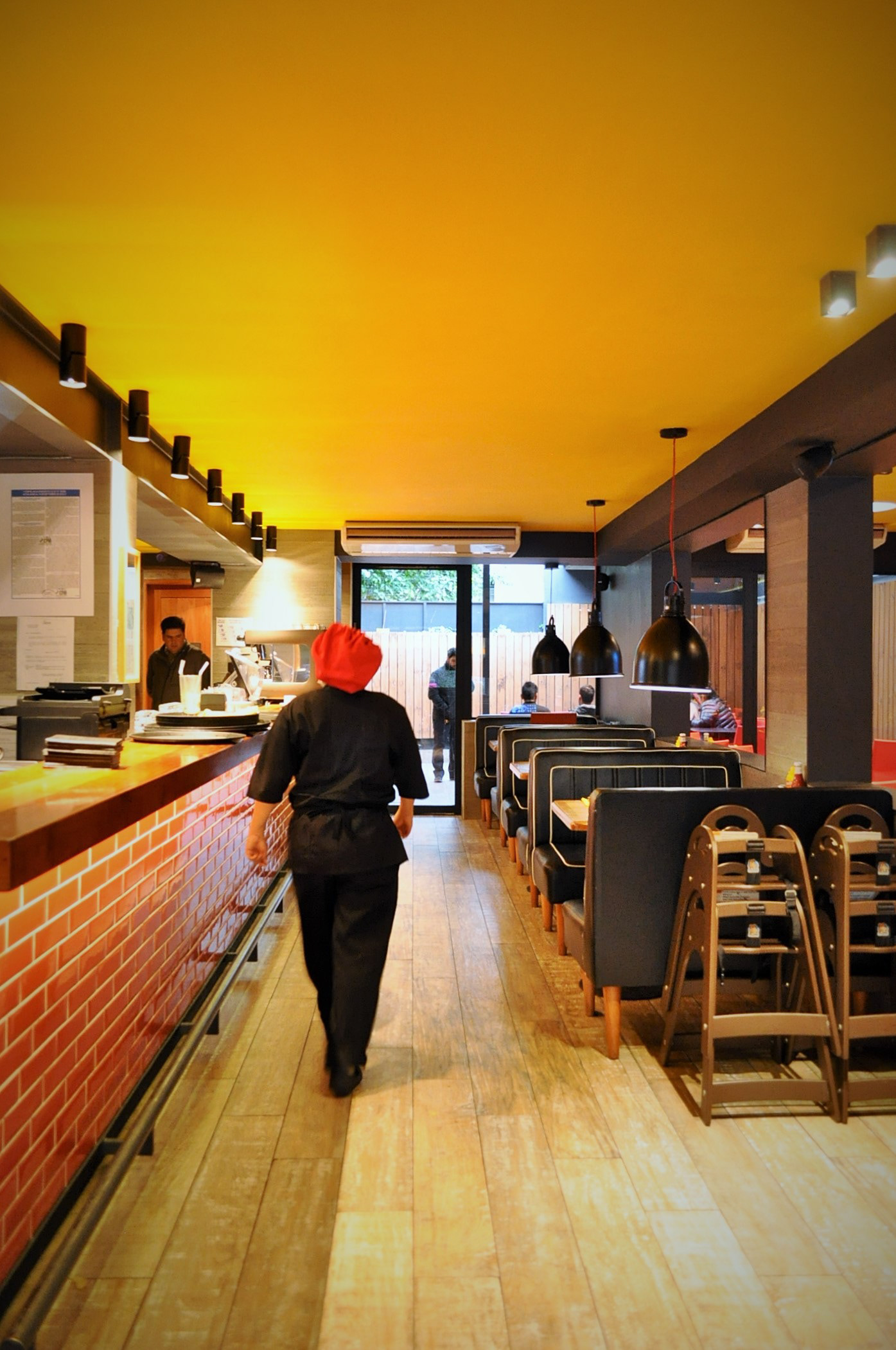 Restaurante Mr Jack Nueva Costanera, Vitacura, Santiago, Chile. Arquitectos Orlando Etcheberrigaray, Klaus Matuschka Superficie 340 m2 Fotografías Orlando Etcheberrigaray Año 2014